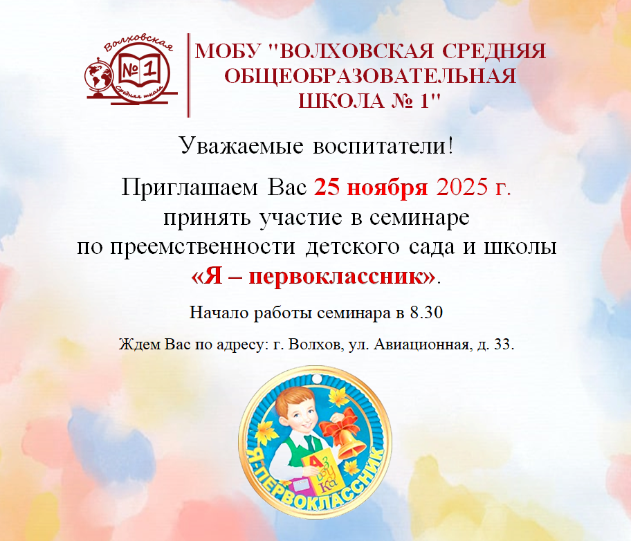 Приглашаем Вас 25 ноября 2025 г. принять участие в семинаре по преемственности детского сада и школы «Я – первоклассник».