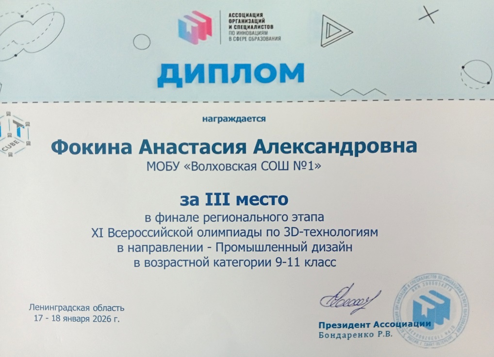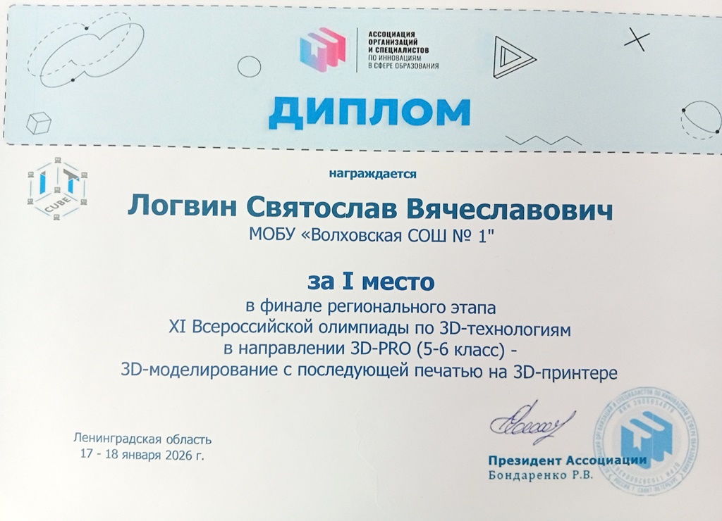 Дорогие друзья, у нас прекрасные новости! Команда нашей школы показала выдающиеся результаты в финале регионального этапа Всероссийской олимпиады по 3D-технологиям. Это сложнейшее соревнование, где оцениваются не только владение высокими технологиями, но и инженерная мысль, креативность и практическая польза проектов. Наши победители и призёры: 1 МЕСТО (направление 3D-PRO, 5-6 классы)